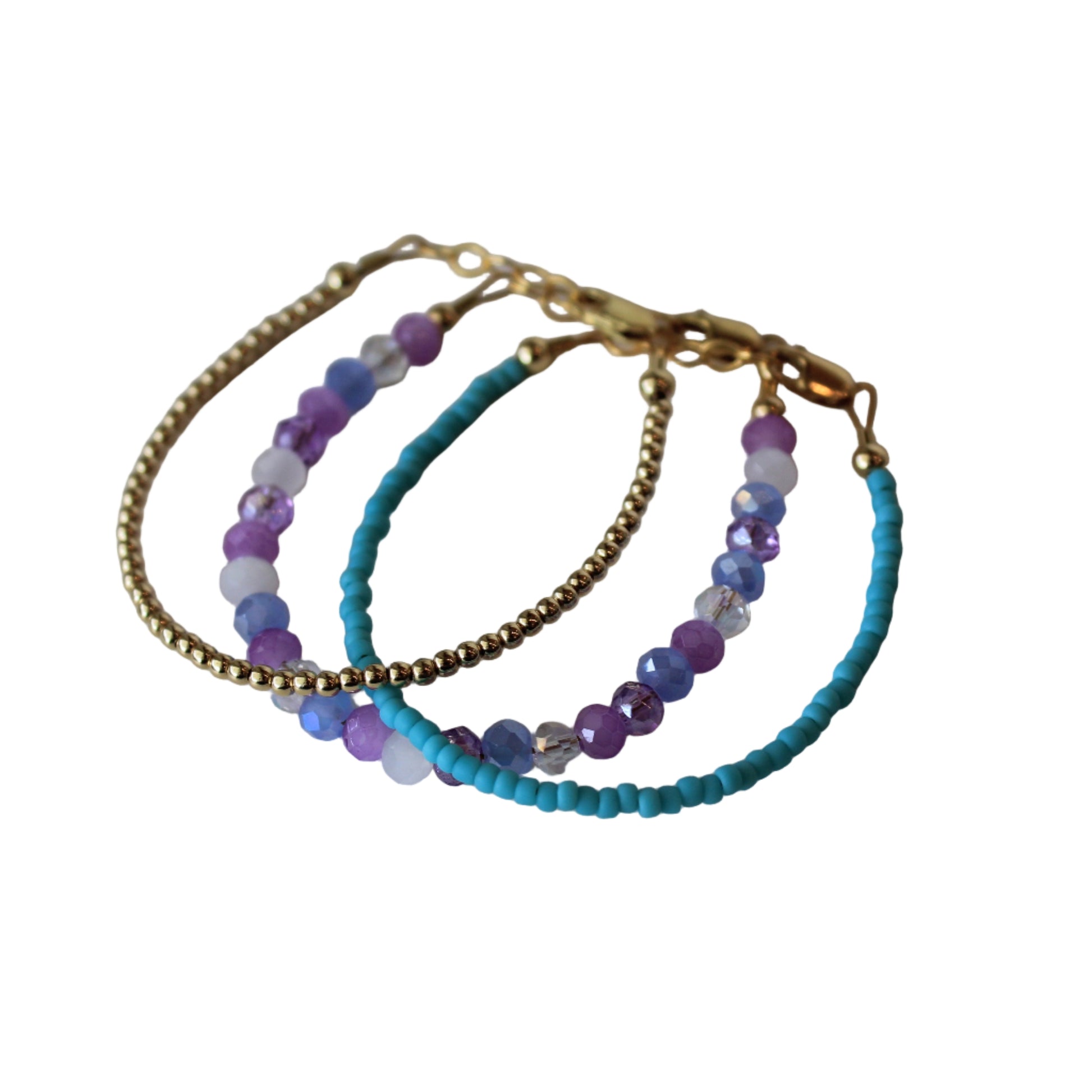 Noni & Me bracelets are made with non tarnishing materials. We use 14k gold beads and findings to ensure the longest life possible out of your bracelets.